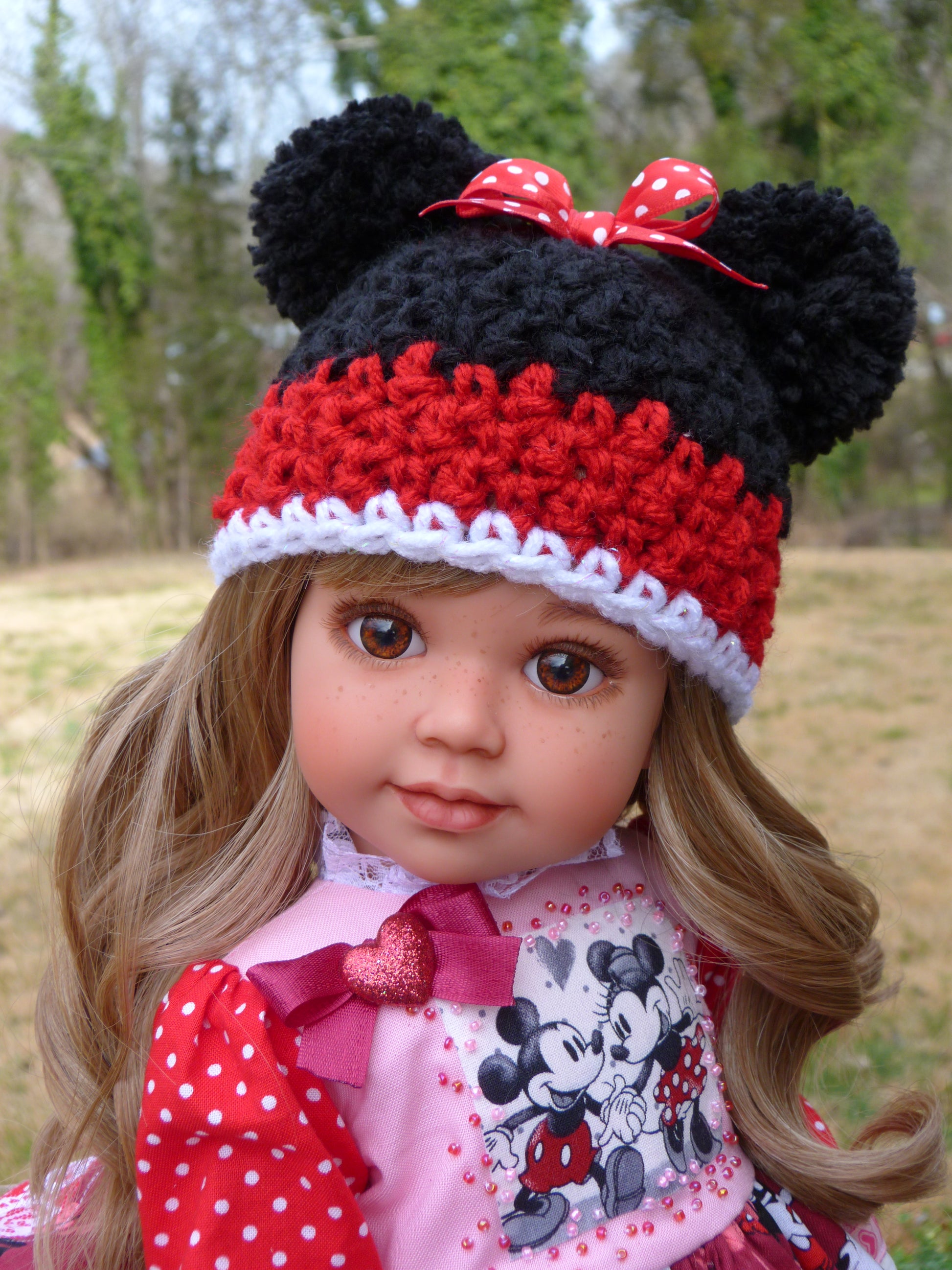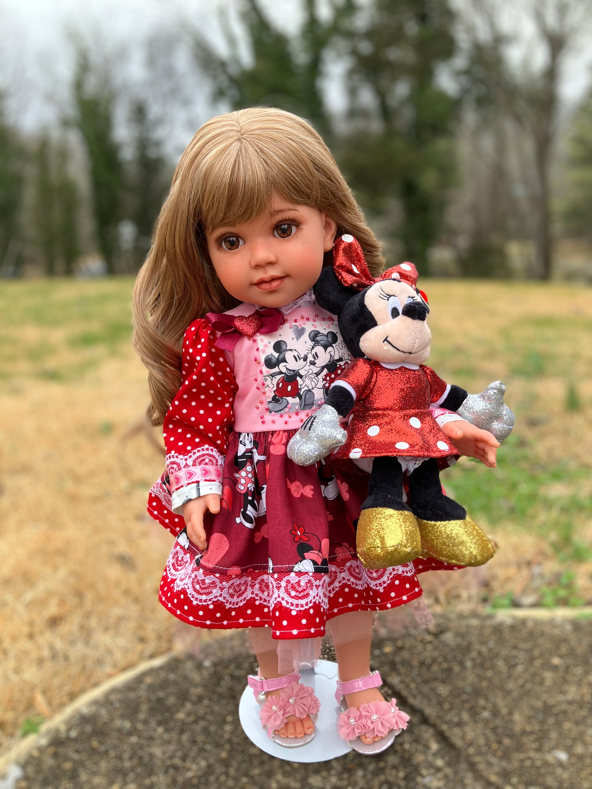 I have customized this doll in my smoke-free, pet-free studio. She is poseable with 5 points of articulation (head tilt and turn, arms and legs). Veronica will arrive in my handmade outfit shown, along with her darling friend, Minnie, and Artist's Certificate of Authenticity.