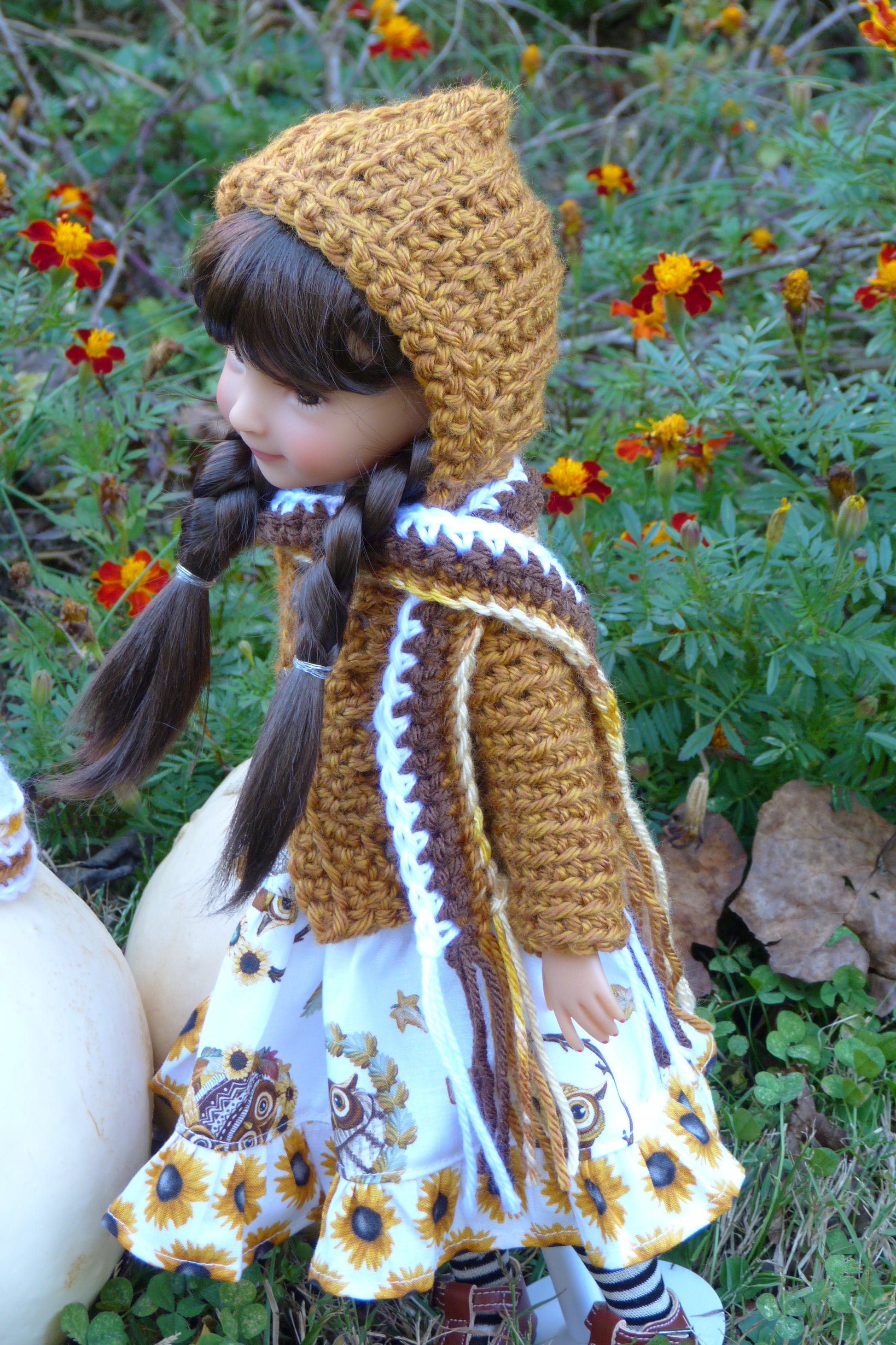 Fall Sunflower Owl Outfit: Hat, Hooded Jacket, Scarf, Dress, Stockings, & Purse