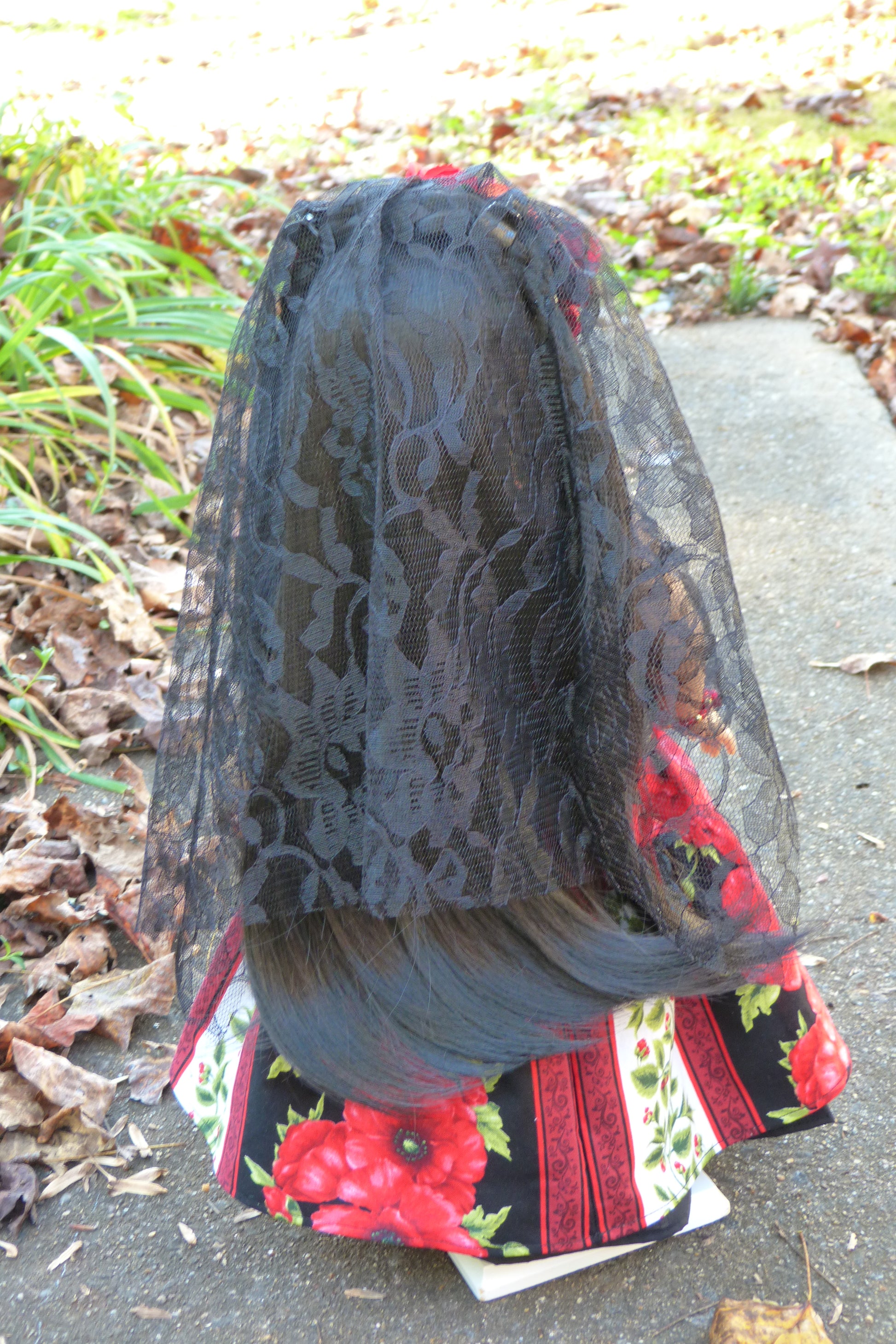 Her new luscious raven black wig is by Bbeauty. It is heat safe and tangle resistant. To maintain the style, mist with water and gently brush. Her braids are clipped into place. Her ears are pierced to fit human-sized earrings.