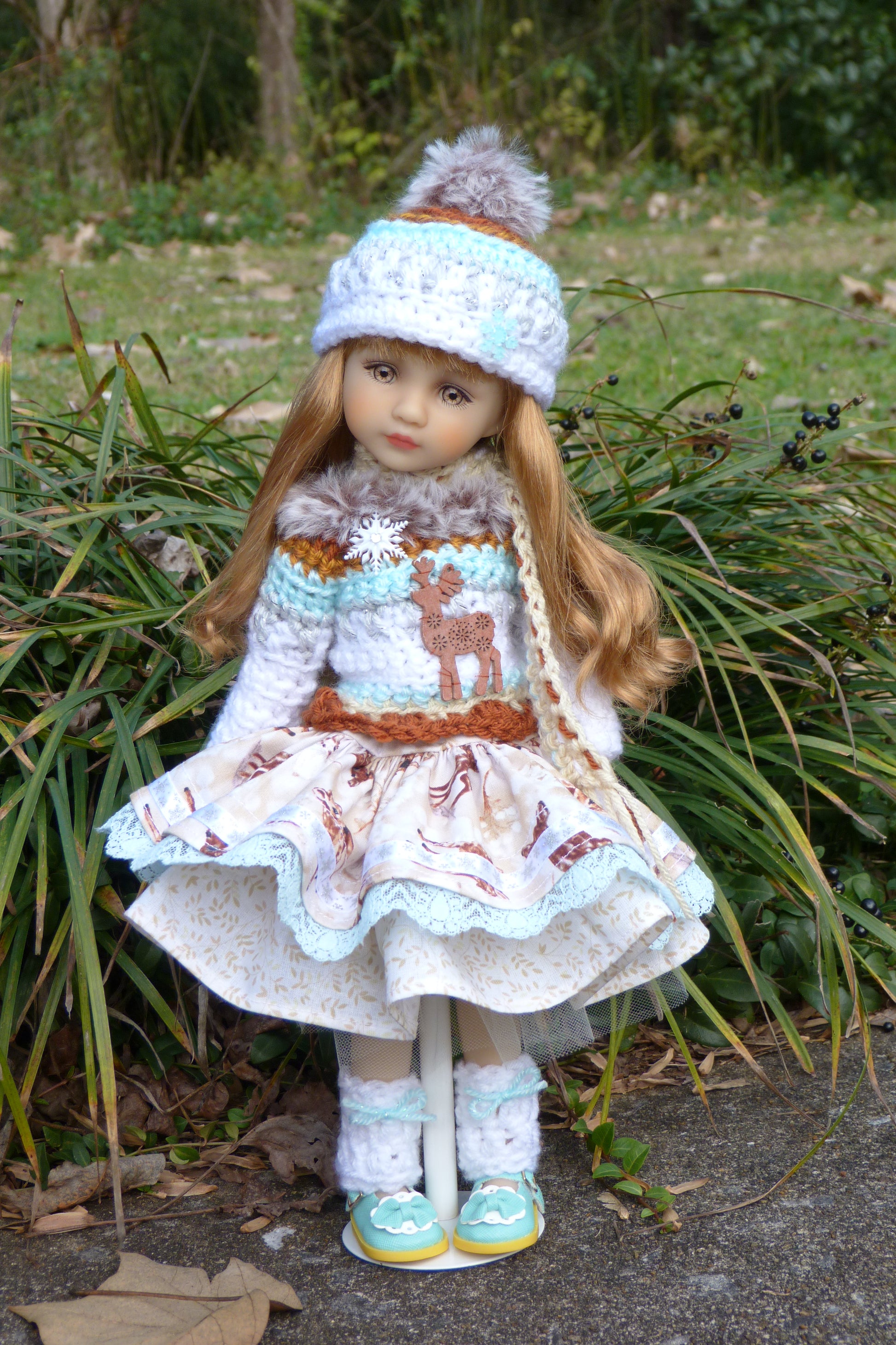 "Winter Woodland Babies" Outfit: Hat, Sweater, Scarf, Skirt, Leg Warmers, & Shoes